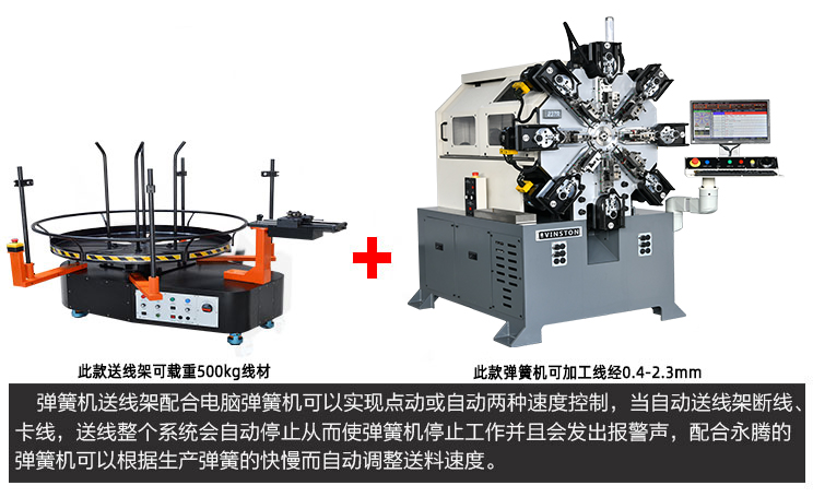 本机型适用于生产电子、电器、文具、仪器、玩具、发饰、工艺品、线成型等高难度精密弹簧,尤其针对各种内(外)双扭簧特别适合。